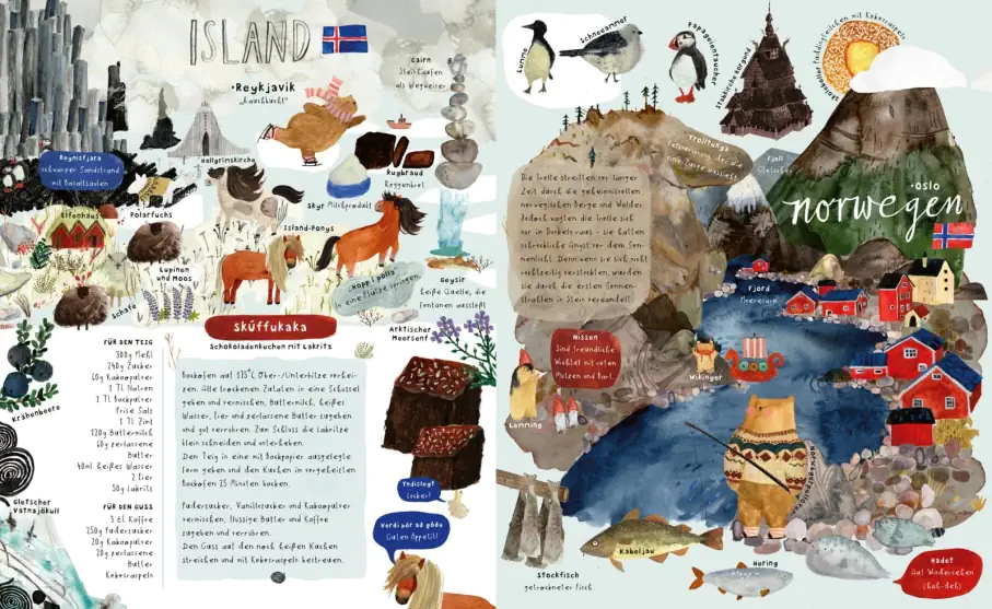 Bär und Katze packen die Koffer und machen sich auf den Weg. Gemeinsam reisen sie um die Welt und staunen über die kunterbunte Vielfalt unserer Erde. 194 Länder werden auf wimmeligen Seiten mit ihren Eigen- und Besonderheiten vorgestellt: Pflanzen, Tiere, Kultur und Köstlichkeiten … Es gibt so viel zu entdecken! Ein wahrer Schatz für große und kleine Weltenbummler – und alle, die es noch werden wollen!