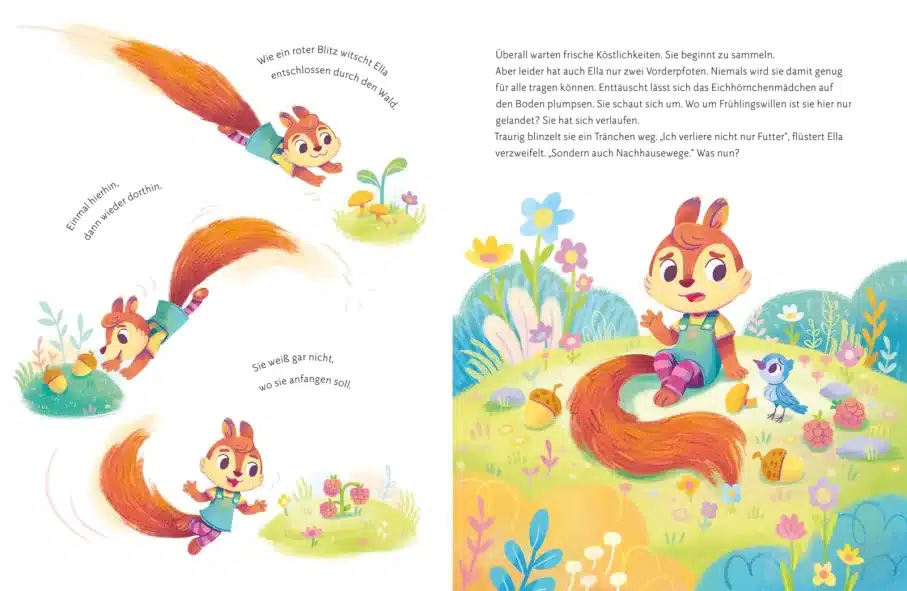 Ella Eichhörnchen ist die beste Versteckfinderin im ganzen Wald. Nur leider vergisst sie immer, wo ihre Nüsse am Ende gelandet sind! Und genau das passiert auch, als sie im Frühling ein Frühstück für ihre Familie sammeln will. Zwischen all den Bäumen verliert sie völlig die Orientierung – und den Weg nach Hause.  Zum Glück trifft sie den kleinen Hasen Otto, einen Osterhasenschüler, der sich im Wald richtig gut auskennt. Gemeinsam entdecken die beiden, dass Ellas Kletterkünste perfekt fürs Eierverstecken sind. So wird aus dem vergesslichen Eichhörnchen das allererste EiHörnchen!