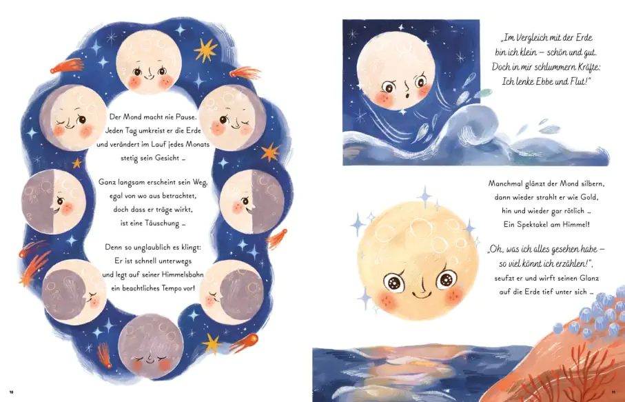 Besonders gelungen finde ich die Kombination aus erzählenden Geschichten und spannendem Sachwissen. Nach jeder Geschichte gibt es zusätzliche Informationsseiten, auf denen die Themen noch einmal kindgerecht erklärt werden. Dadurch verbindet das Buch Fantasie und Wissen auf eine wunderbare Weise. Kinder können erst in die magischen Geschichten eintauchen und danach direkt mehr über Planeten, Sterne und das Universum erfahren.