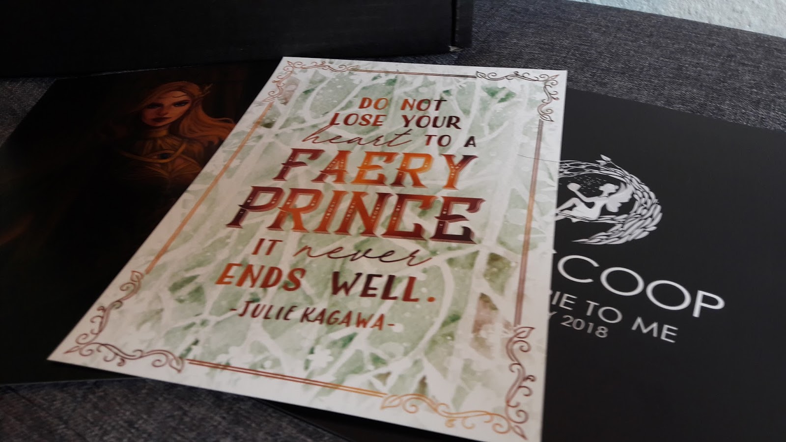 AuĂźerdem waren neben FairyScoop zwei wunderschöne Bilder dabei, welche zu der „Throne of Glass“-Reihe von Sarah J. Maas gehören. Einmal ist Aelin darauf zu sehen und auf dem anderen Bild Rowan. Auf der RĂĽckseite sind ganz wunderbare Faerie-Zitate. Solche Goddies mag ich auch immer sehr und diese sind gestaltet worden von Diana Worak und Stella´s Bookish Art.