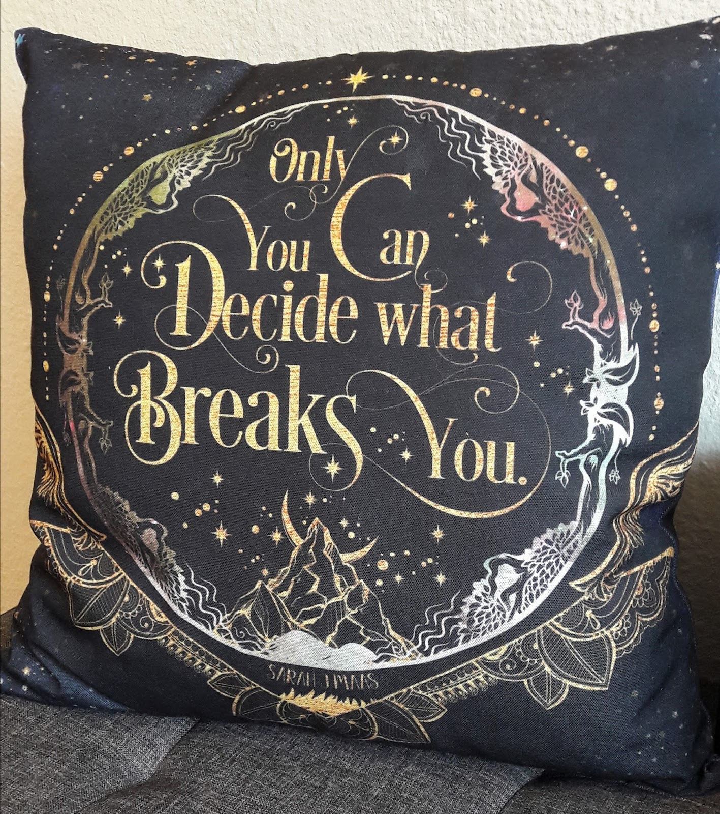 Dieses super tolle Bookish Pillow, entworfen von Evie Bookish, war dabei. Es ist ein Zitat aus der „Das Reich der sieben Höfe“-Reihe von Sarah J. Maas. Nicht nur, dass ich die Autorin und die Buchreihe liebe, dazu ist der Kissenbezug mega cool gestaltet und passt perfektbei mir rein.